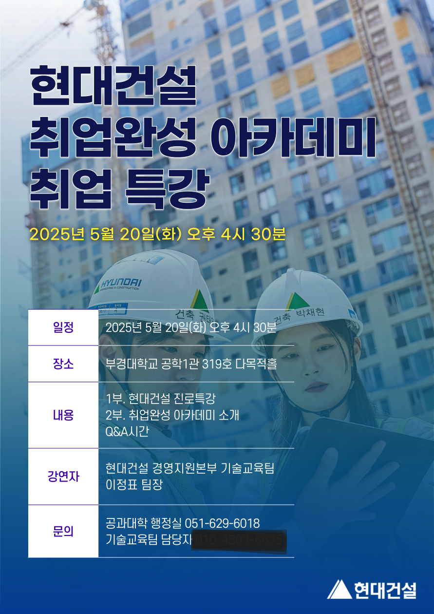 [공과대학생 취업지원]현대건설(주) 진로 특강 안내(5/20)