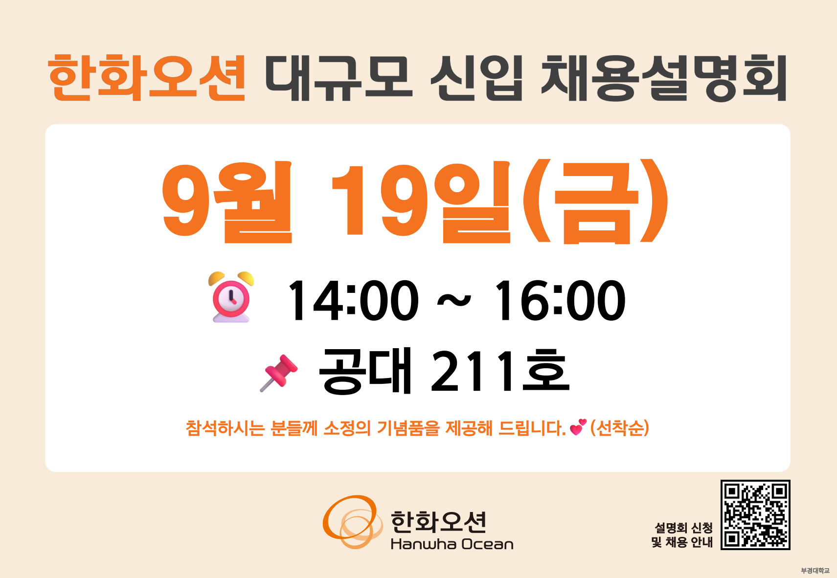 [한화오션] 채용 설명회 개최(9/19(금) 14:00~16:00)