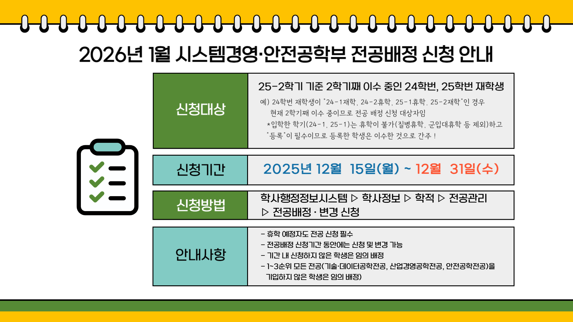 | ▶ 2025-2학기 전공배정 신청 안내(시스템경영·안전공학부) ◀ | |||