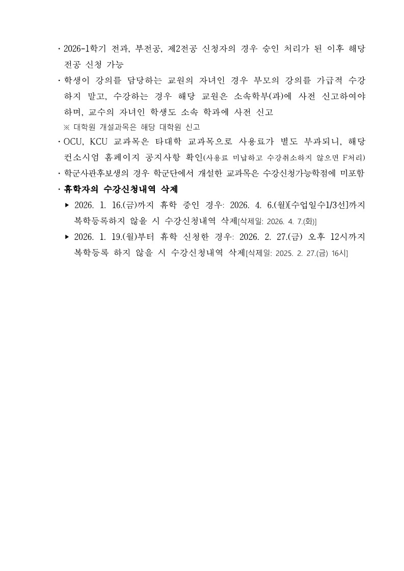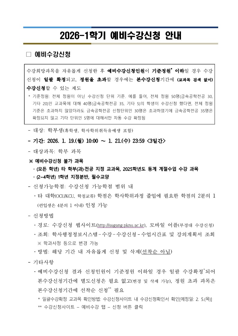 2026-1학기 예비수강신청 안내(1/19~1/21)