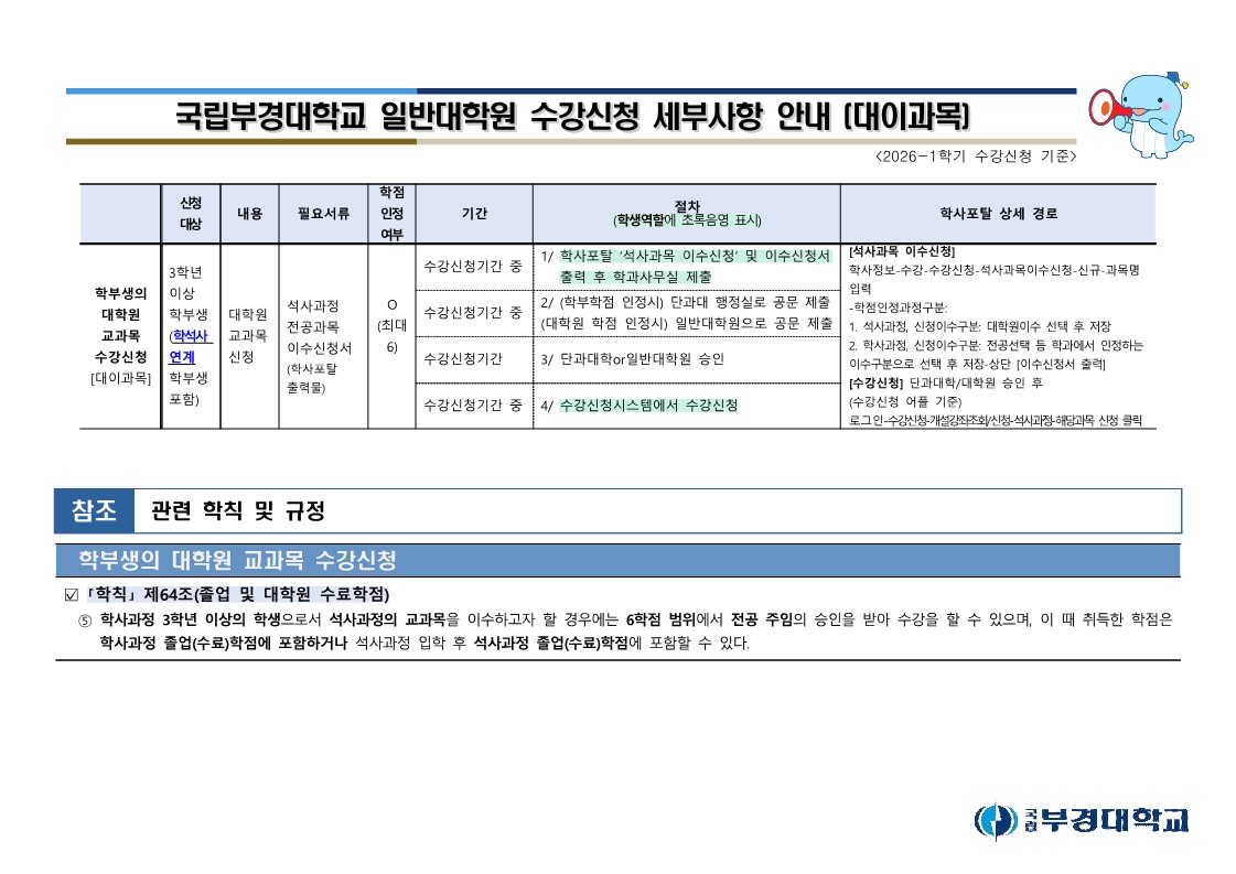 | 2026-1학기 학부생의 대학원 교과목 수강(대이과목) 안내 | |||