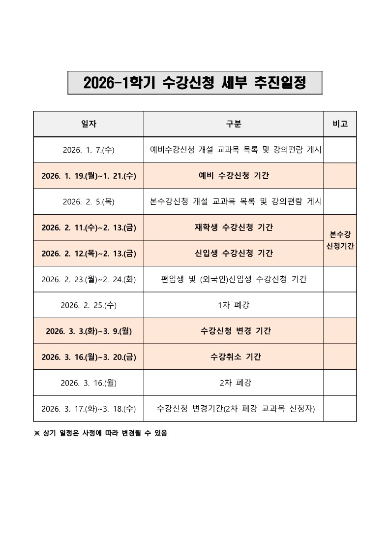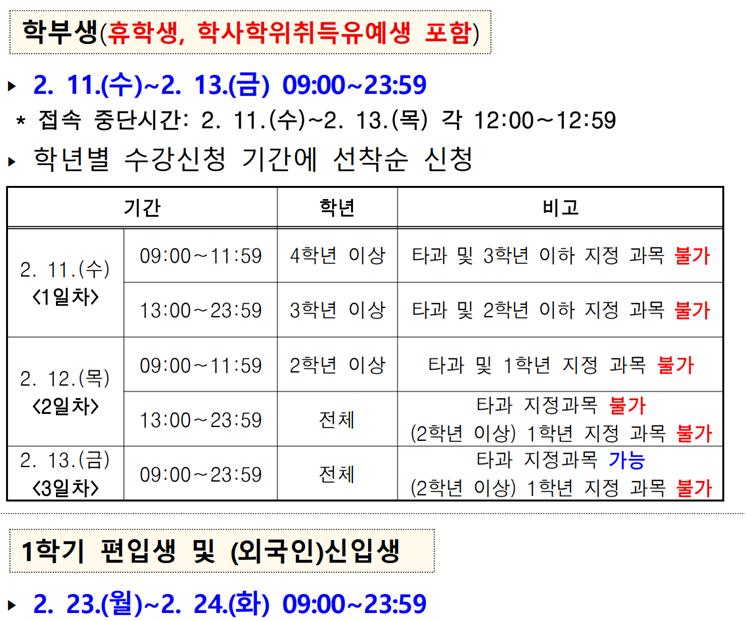 2026-1학기 수강신청 안내(2/11~2/13)